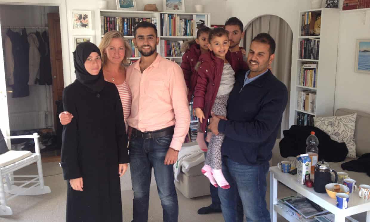 Lisbeth Zornig and a Syrian family she drove to Copenhagen